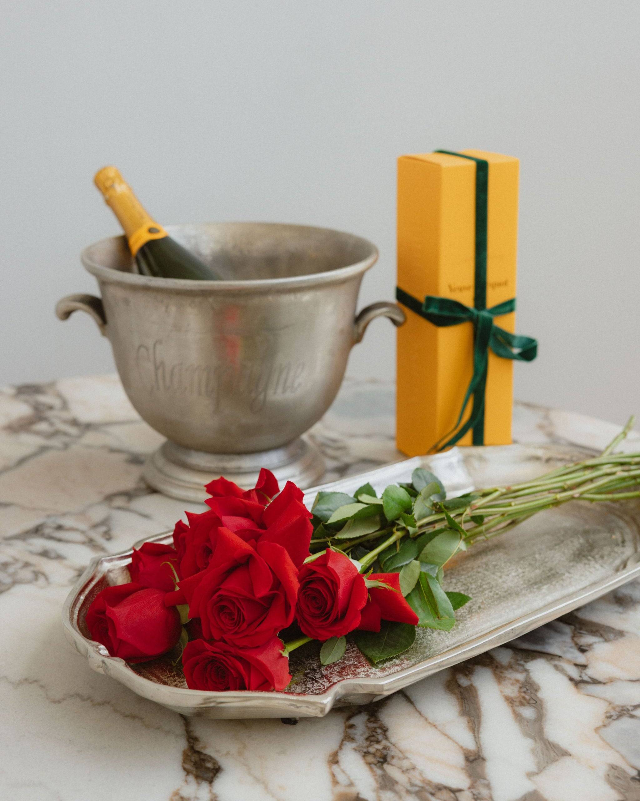The most classic way to express love is with Champagne and Roses.